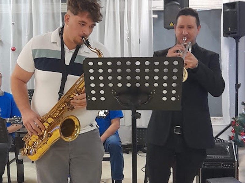 A klasszikus zenei blokkot követően Flender Gábor tanár úr trombitajátéka csendült fel, amelyben ismert karácsonyi dallamok hangzottak el. A produkciót Rázga Áron zongorakísérete és Hinel Attila szaxofonjátéka színesítette.
