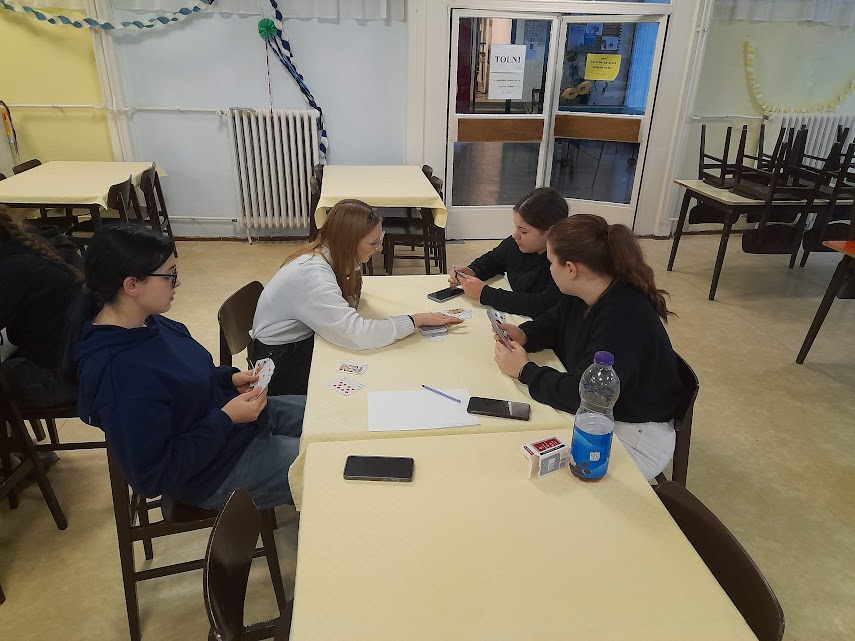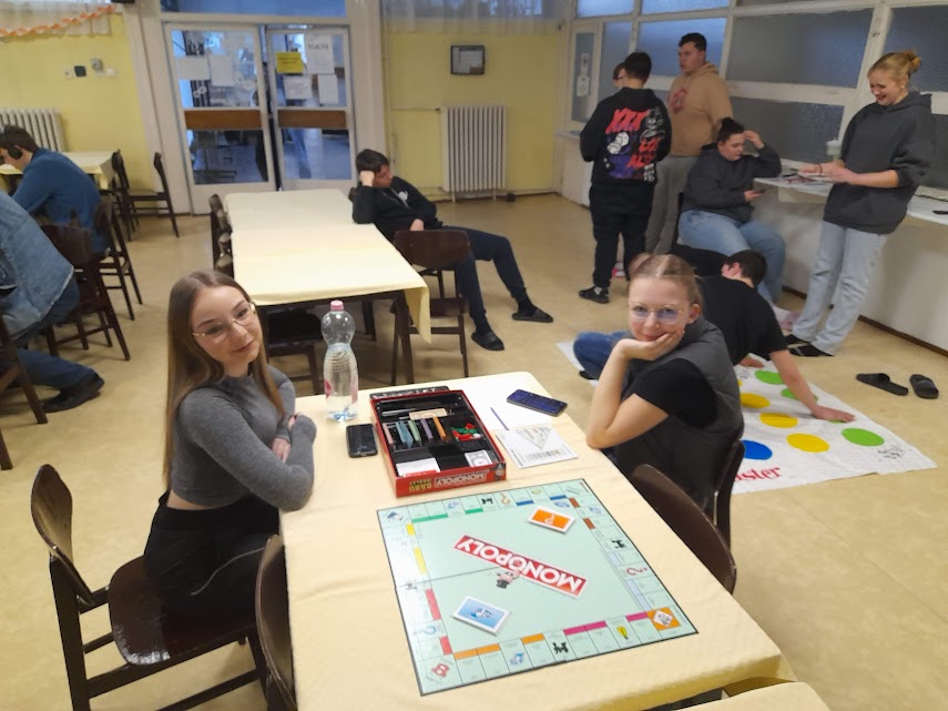A délután közös társasjátékozással kezdődött az ebédlőben és a fiúklubban, ahol a legkedveltebb játékok a sakk, römi, Activity, Solo, Twister és természetesen a darts volt. A lányklubban farsangi szokásokról szóló kvízt oldottak meg a csapatok, felelevenítve ezzel korábbi hagyományainkat.